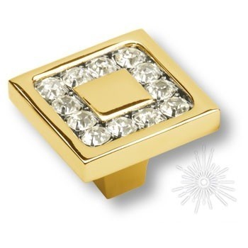 Ручка кнопка 0771-030-2, материал Латунь, отделка Золото Кристаллы Swarovski, 30*30*22 мм